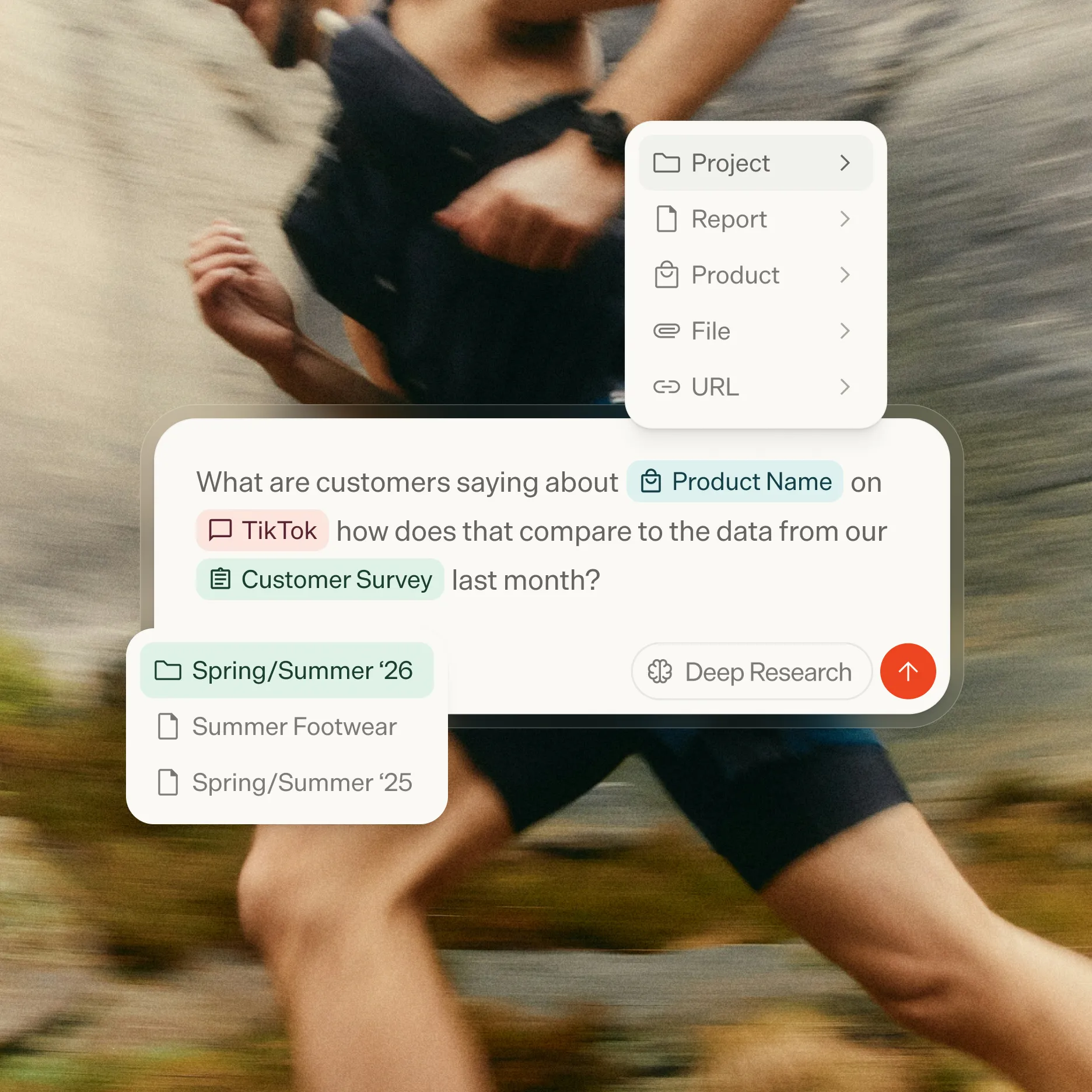 Query across social platforms, consumer reviews, web data, syndicated research, and internal documents — all in one place, in seconds. Every answer includes full source attribution and confidence scoring.